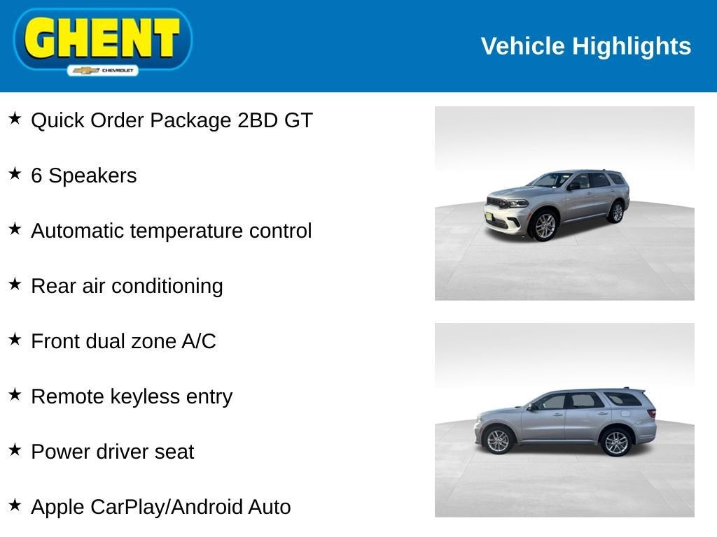 Discover the perfect balance of power, style, and functionality with the 2024 Dodge Durango GT. Experience the difference for yourself by scheduling a test drive at our dealership today. We're confident you'll be impressed by this exceptional SUV.